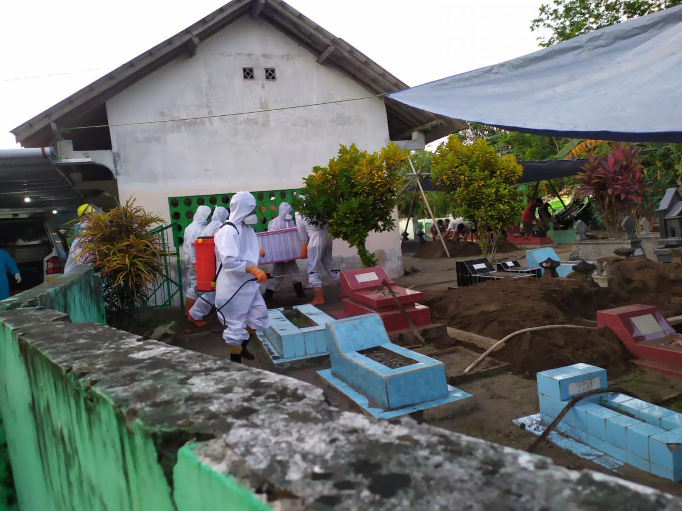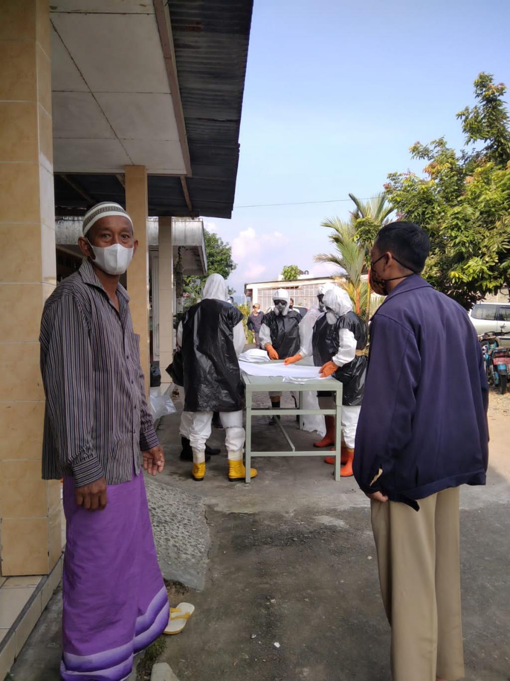 Dukuh, RT, imamuddin dan tokoh masyarakat setempat, giat berjalan dengan lancar dengan sarana pendukung berupa APD level 3, lakban, sprayer, dua armada roda empat serta vitamin. Giat dipersiapkan sejak pukul 14.00 WIB hingga berakhirnya pemakaman pukul 17.00 WIB. (may)