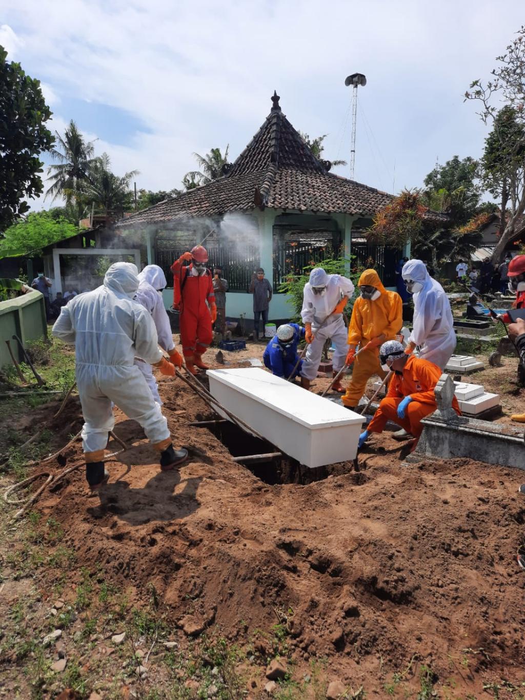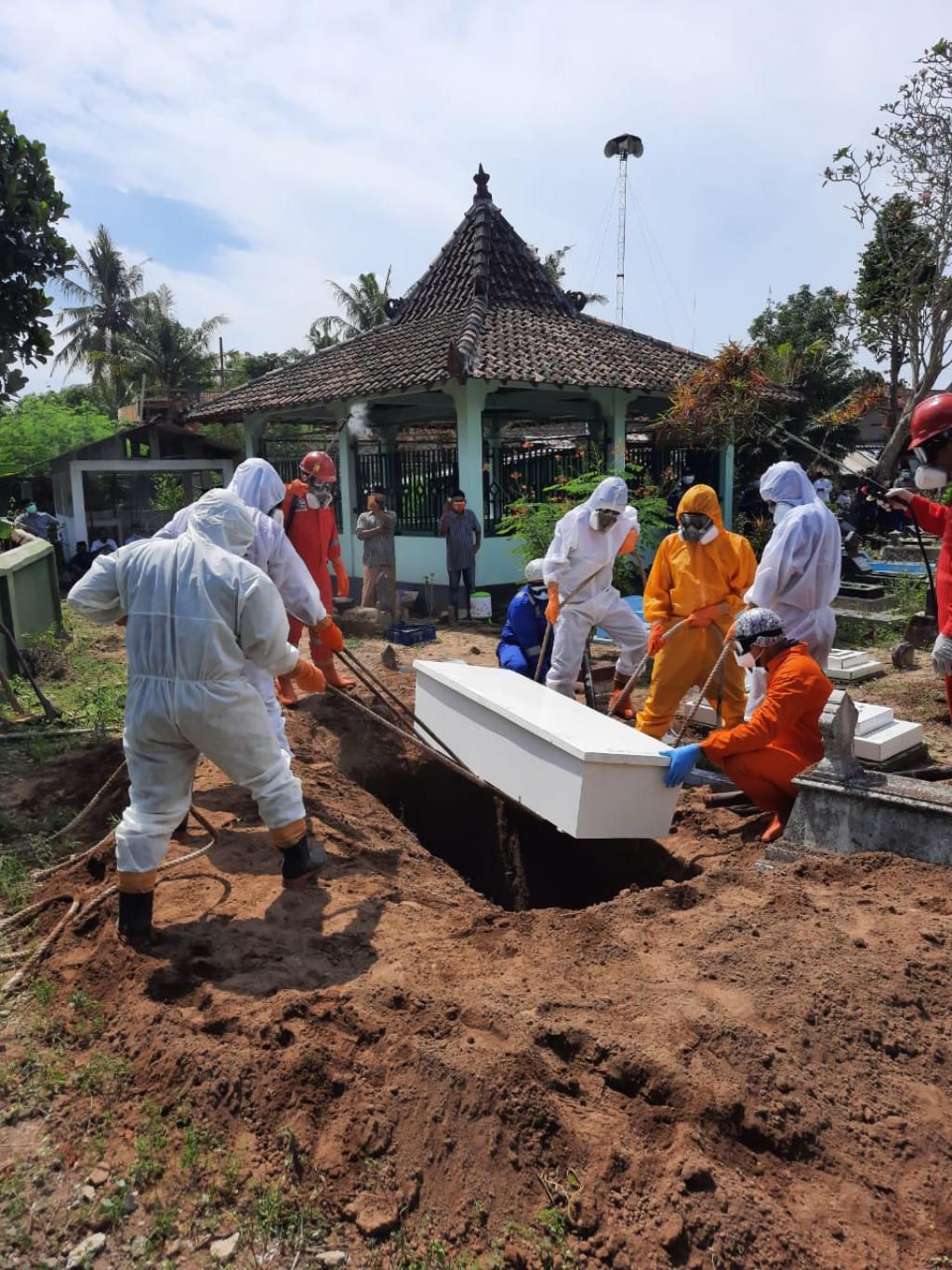 Jenazah meninggal di RS Sardjito dan dirukti pihak rumah sakit. Pemakaman secara prokes dilaksanakan di makam RT 74 Padukuhan Banyon oleh Tim Posko Satgas Penanganan Covid-19 Kalurahan Pendowoharjo, sekitar pukul 11.00 WIB.