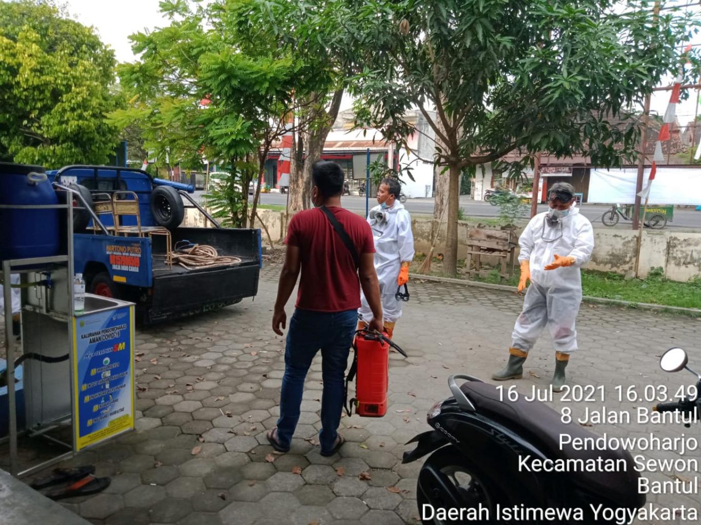 Giat didukung sarana APD, sprayer, lakban, tambang, kayu dipimpin langsung oleh Lurah pendowoharjo, H. Hilmi Hakimudin, S.Pd.I., dibantu oleh tim TKC Posko Satgas Penanganan Covid-19 Kalurahan Pendowoharjo, relawan FPRB SIAGA Pendowoharjo dan warga setempat. Pendampingan dilakukan oleh Dukuh dan RT setempat.