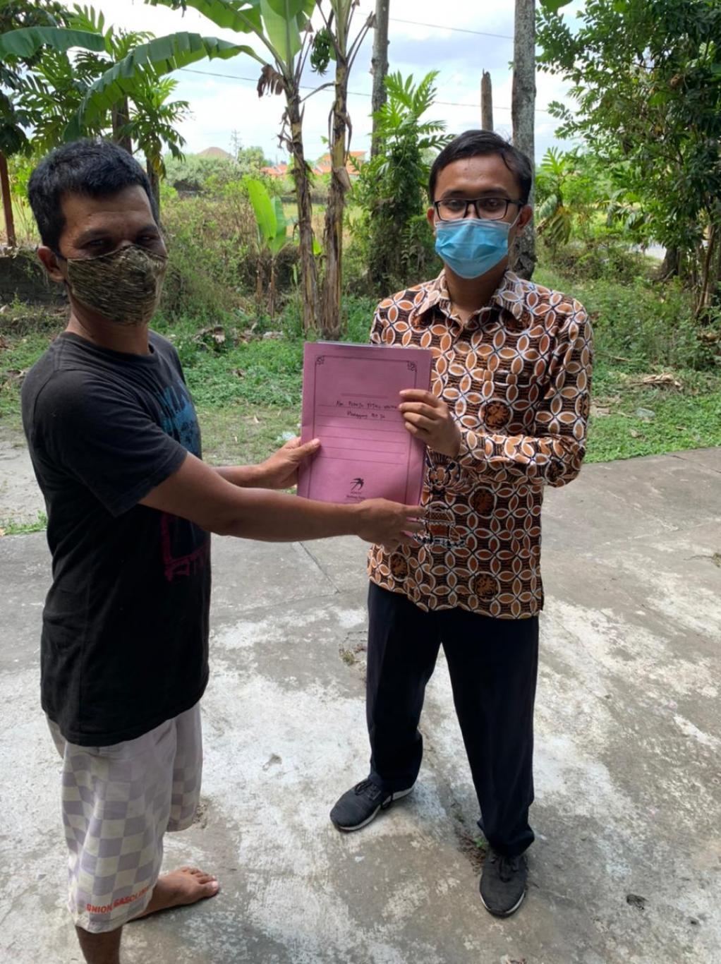 Akta disampaikan oleh Kaur Tata Laksana Kalurahan Pendowoharjo, Ganang Nur Restu, S.S. , kepada ahli waris, Yuwari, sebagai ahli waris.