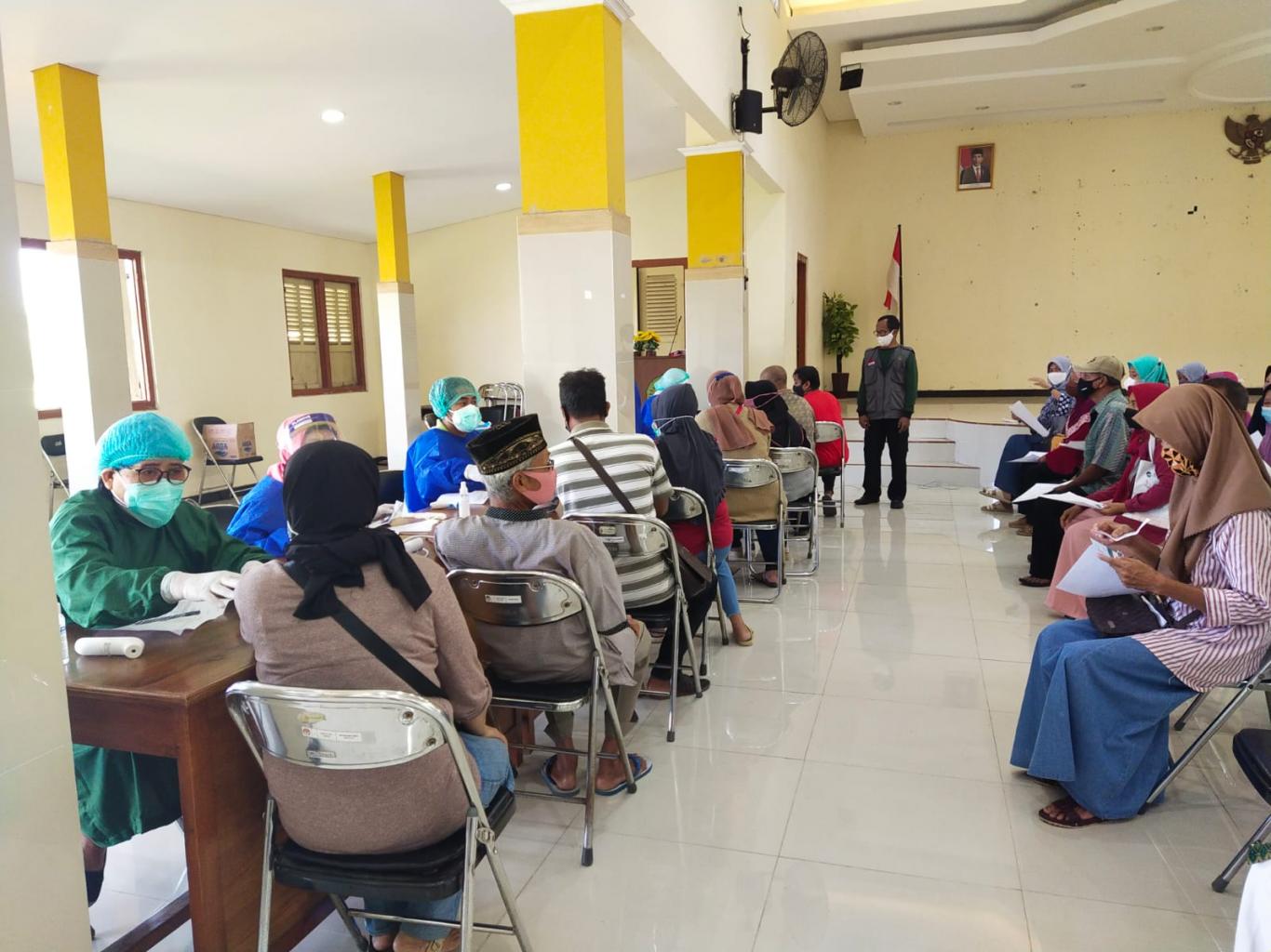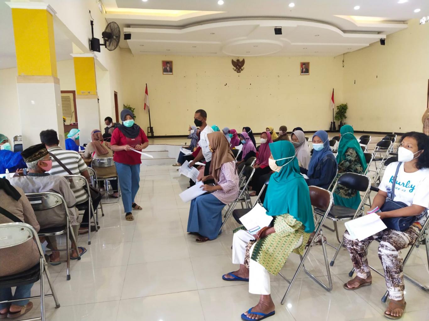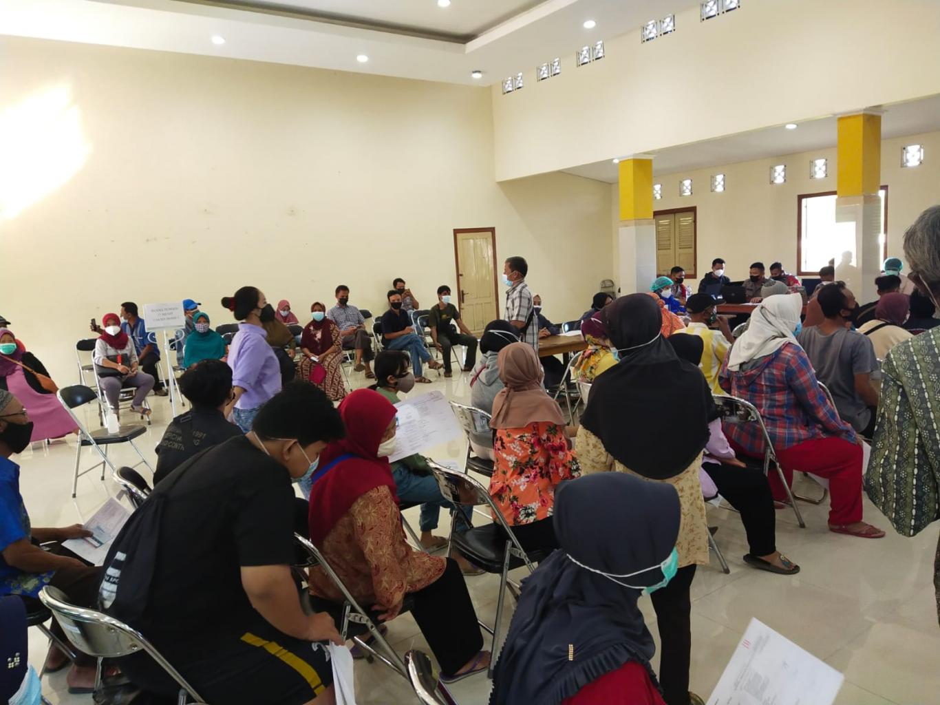Pendowoharjo---- Sebanyak 420 peserta vaksin telah lengkap mendapatkan vaksinasi pada hari ini, Kamis (07/10/2021) di Gedung Manggolo Manis Kalurahan Pendowoharjo. Sejumlah tersebut telah lolos skrining dan berhasil disuntik untuk menggenapi dosis yang telah dilakukan beberapa waktu sebelumnya.