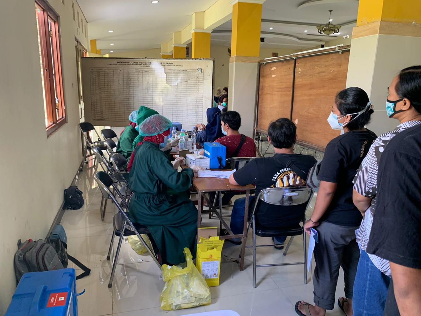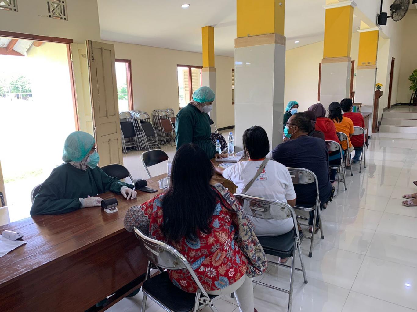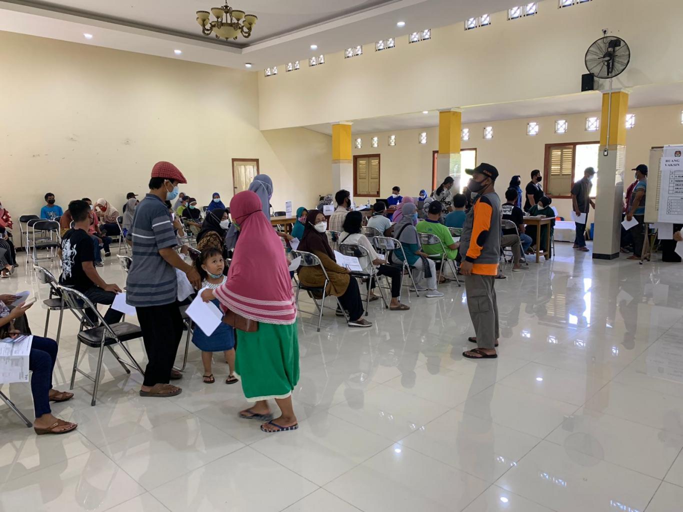 Pendowoharjo---- Sebanyak 502 orang berhasil lolos skrining dan disuntik vaksin pada pelaksanaan Vaksinasi Covid-19 Dosis 2 hari ini, Selasa (12/10/2021) di Gedung Manggolo Manis Kalurahan Pendowoharjo. Jenis vaksin yang dipakai kali ini adalah Sinovac.