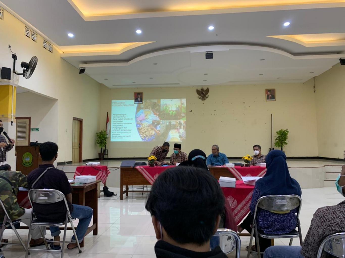 Pendowoharjo---- Kamis (11/11/2021) pagi ini di Gedung Manggolo Manis Kalurahan Pendowoharjo dilaksanakan kegiatan Penyuluhan dan Penyebarluasan Informasi Bursa Tenaga Kerja oleh Disnakertrans Kabupaten Bantul.