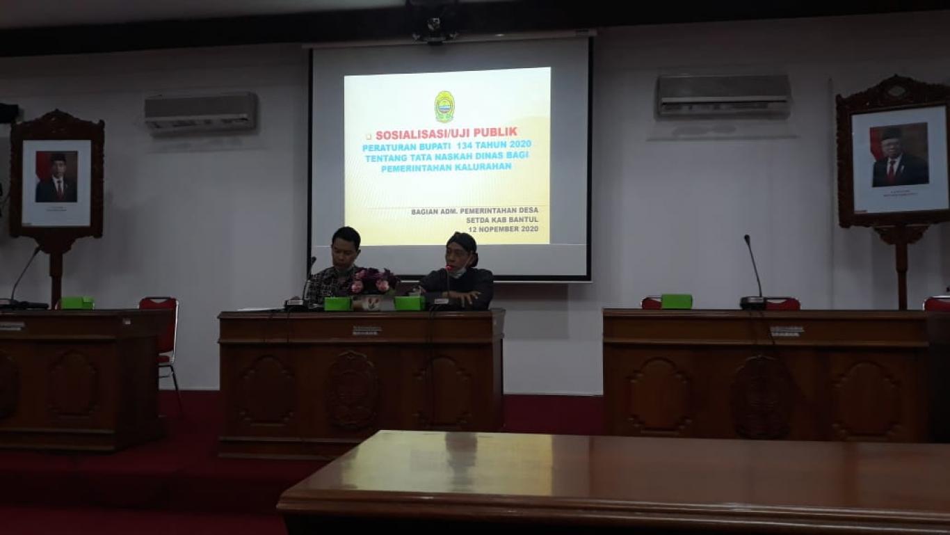 Demikian disampaikan Kabag Pemdes Kabupaten Bantul, Kurniantara, M.Si., dalam sambutannya di Ruang Mandhala Saba Madya Gedung Induk Lantai III Parasamya ketika membuka acara Sosialisasi sekaligus Uji Publik Peraturan Bupati tentang Nomor 134 Tahun 2020 tentang Tata Naskah Dinas Bagi Pemerintahan Kalurahan, Kamis (12/11/2020).
