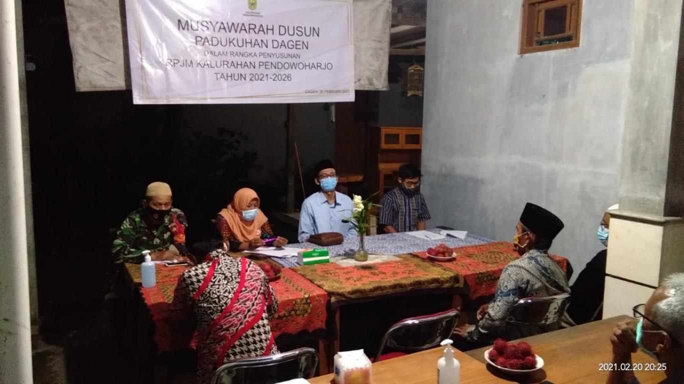 Dihadiri oleh Lurah Pendowoharjo, H. Hilmi Hakimudin, S.Pd.I., musdus di rumah Dukuh Dagen dihadiri Dukuh, Ketua RT, perwakilan tokoh pemuda, tokoh tani, tokoh PKK/ perempuan, pokgiat serta anggota Bamuskal keterwakilan wilayah. Musdus dalam pendampingan pendamping desa dan Babinsa Pendowoharjo. Bertindak sebagai fasilitator dan moderator tim 2 RPJMKal.