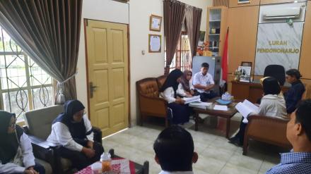 Ditemui di Ruang Lurah, Priyo Harwijayanto, S.Si., M.Si., bersama tim-nya menyampaikan hasil reviu pengadaan barang dan jasa untuk menilai kepatuhan pelaksanaan pengadaan baran gdan jasasesuai peraturan perundang-undangan serta memberi saran perbaikan atas kelemahan yang dijumpai.