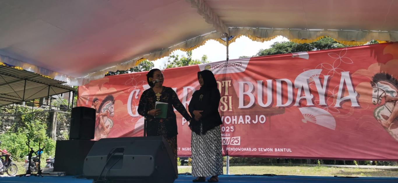 Ibu Cipto Rini beserta putrinya, Kinanthi Sekar Pamungkas ikut tampil membawakan tembang macapat dalam Event Gelar Potensi Budaya Pendowoharjo di RTH Soret Minggu (23/11/2025).