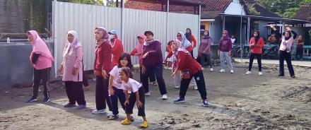 Suasana penuh keakraban terlihat jelas saat musik senam mulai diputar. Ibu-ibu menjadi penggerak utama dengan semangat dan gerakan yang lincah mengikuti instruktur. Bapak-bapak tak kalah antusias menjaga ritme, meski sesekali diselingi canda tawa di barisan belakang. Anak-anak menambah keceriaan acara dengan kepolosan dan semangat mereka mengikuti gerakan senam yang enerjik.