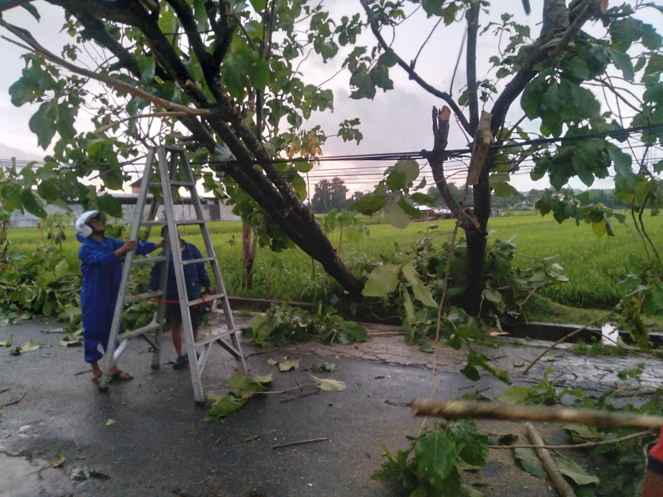 PENDOWOHARJO----Menyikapi cuaca ekstrem yangterjadi beberapa hari terakhir terkait hujan dan angin, FPRB SIAGA Kalurahan Pendowoharjo siaga dalam mitigasi bencana. Diantaranya pada Senin (12/01/2026) sore dengan pengkondisian bambu yang berisiko mengganggu aliran listrik. Selain itu juga dilakukan pengkondisian atas pohon jati yang tumbang ke arah jalan di Pucung RT 52.Salam kemanusiaan.