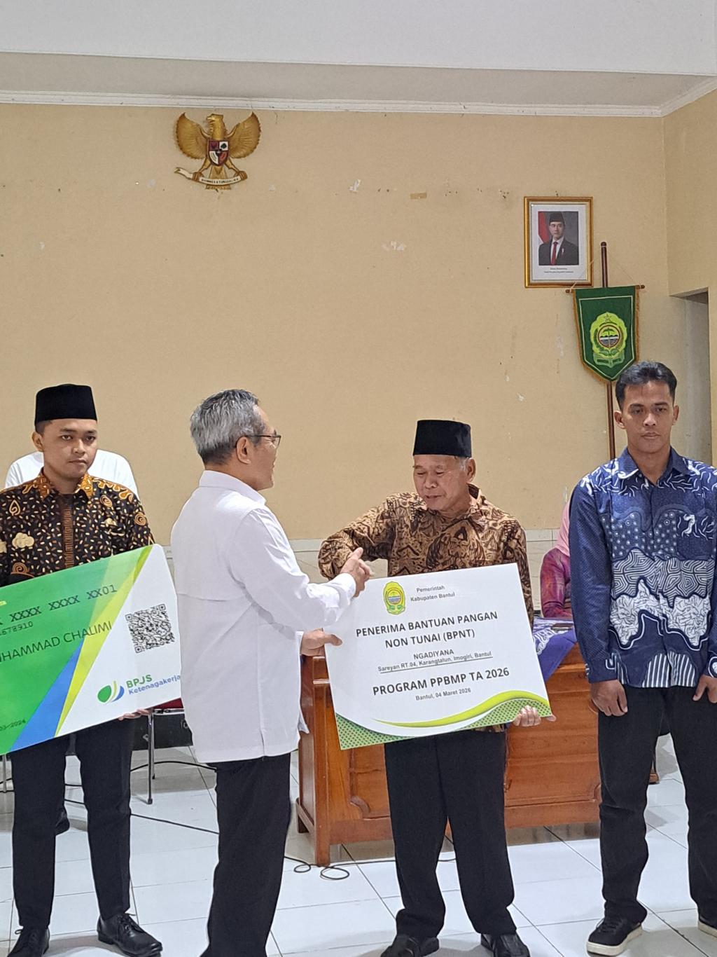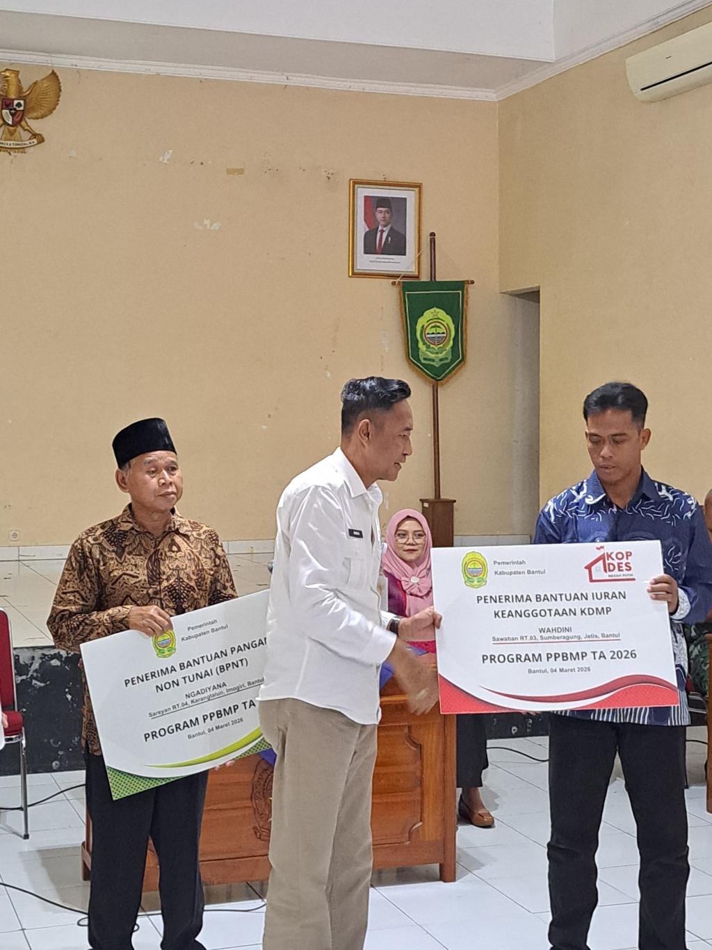 Rabu (04/03/2026) Lurah Pendowoharjo, H.Hilmi Hakimudin, S.Pd.I hadir dalam prosesi penyerahan simbolis anggaran PPBMP tahun 2026,yakni pemberian BPNT dan BPJS Ketenagakerjaan, serta Kepesertaan KDMP (Koperasi Desa Merah Putih) bagi warga miskin di Kabupaten Bantul.